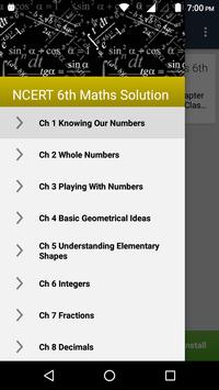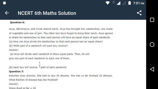 6th Class Maths - app is specially designed for the NCERT class 6 students to help them prepare for their examinations. This app having NCERT syllabus Maths Class 6th solutions can be useful in two scenarios - To verify your answer after you solve the exercise problems and other one is Check the solution when you stuck.