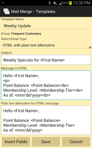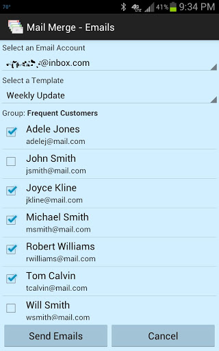 Mail Merge Lite allows you to send customized emails using templates and contact data. Reach all your contacts individually with just one touch directly from your Android device!