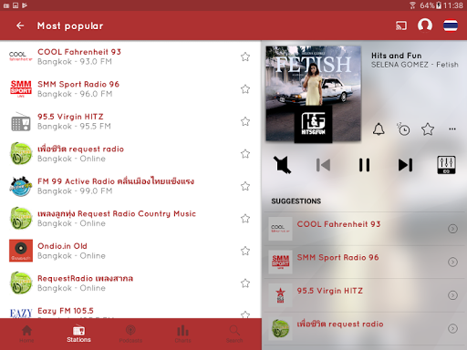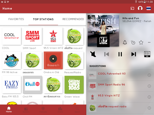 อาจมีบางสถานีที่ไม่สามารถให้บริการได้เนื่องจากการสตรีมอาจออฟไลน์ชั่วคราว แอปพลิเคชันนี้ได้รับการปรับปรุงสำหรับเครือข่าย 3G และ Wi-Fi