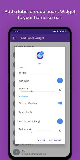 - เพิ่มวิดเจ็ตป้ายที่ยังไม่ได้อ่านของฉลากที่คุณชื่นชอบไปยังหน้าจอหลักของคุณ