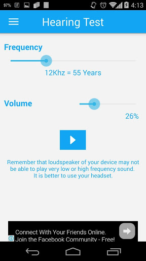 Hearing Test allows user to test his/her hearing or listening ability with respect to age.