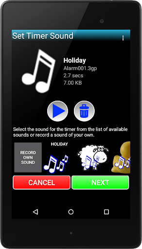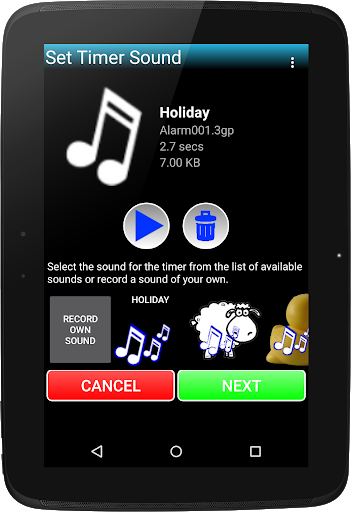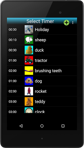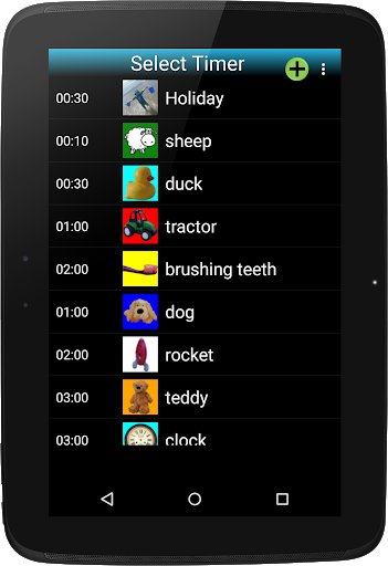 An additional feature of our fun app is a specific setting to help children clean their teeth, with a 2 minute timer with 4 cycles of 30 seconds corresponding to which quadrant of the mouth to brush. For all the other timers you can choose the duration yourself.