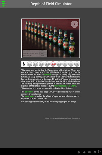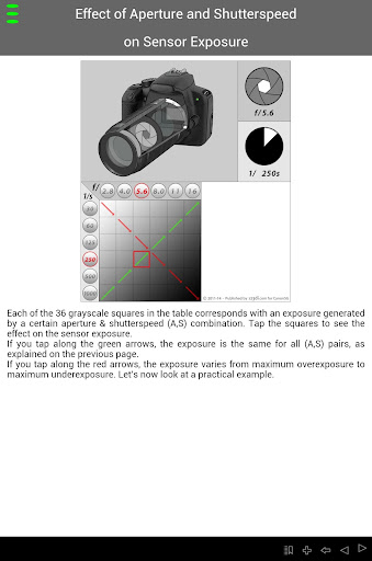 * หัวข้อในเชิงลึกที่มีตัวจำลองแบบโต้ตอบอธิบายว่ารูรับแสงและลูกอืดมีผลต่อการเปิดรับแสงความลึกของฟิลด์และการเคลื่อนไหวเบลอในโหมดการสัมผัสที่หลากหลาย