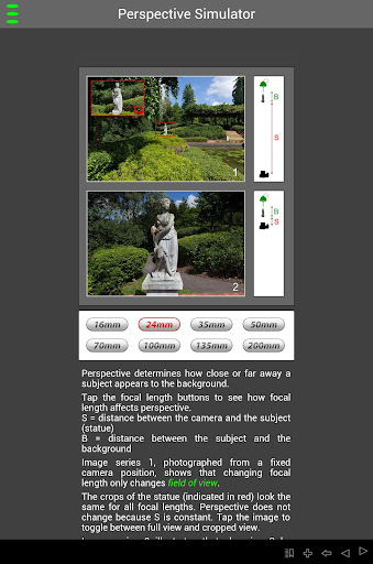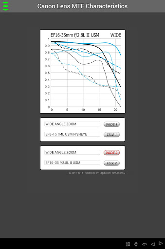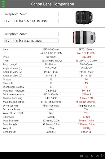 EF Lens Simulator มีข้อมูลจำเพาะของเลนส์รายละเอียดของเลนส์ Canon EF, EF-S และ EF-M ปัจจุบันทั้งหมด แอปพลิเคชั่นนี้ยังมีโปรแกรมจำลองแบบอินเตอร์แอคทีฟที่ไม่ซ้ำกันที่ช่วยให้คุณเปรียบเทียบมุมมองของการรวมเลนส์กล้องสองชุดโดยกล้องและเลนส์สามารถเป็น SLR และเลนส์ Canon EOS ได้