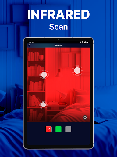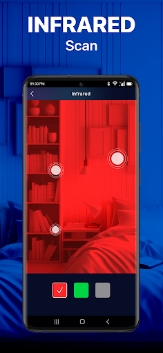 - การสแกนอินฟราเรด: ตรวจจับสัญญาณอินฟราเรดที่ปล่อยออกมาโดยกล้องที่ซ่อนอยู่แม้ในสภาพแสงน้อยเพิ่มประสิทธิภาพการป้องกันความเป็นส่วนตัวของคุณในสภาพแวดล้อมที่มีแสงสลัวและอยู่ในการควบคุม