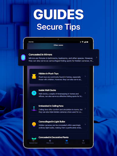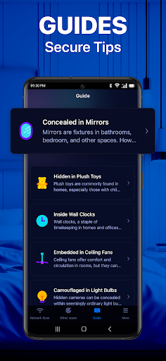 แอพมีมากกว่าการตรวจจับคู่มือของเรานำเสนอคำแนะนำจากผู้เชี่ยวชาญและข้อมูลเชิงลึกสำหรับการจำกล้องที่ซ่อนอยู่อย่างชาญฉลาดซึ่งปลอมตัวเป็นวัตถุประจำวันไม่ว่าจะเป็นช่องระบายอากาศแถบพลังงานศิลปะผนังเบ็ดเสื้อผ้ากรอบรูป ฯลฯ คู่มือของเราช่วยให้คุณเรียกคืนสภาพแวดล้อมของคุณ