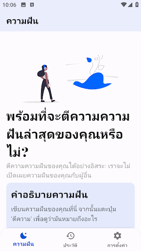 อินเทอร์เฟซที่ใช้งานได้ง่าย: อินเทอร์เฟซของ Dream Snap ถูกออกแบบให้เป็นเรื่องง่ายและใช้งานได้ง่ายทำให้ทุกคนสามารถใช้งานได้อย่างง่ายดาย ไม่ว่าคุณจะเป็นผู้วิเคราะห์ฝันที่มีประสบการณ์หรือเพิ่งเริ่มต้น Dream Snap เป็นเครื่องมือที่สมบูรณ์แบบสำหรับการปลดล็อกความลับของจิตใต้ของคุณ