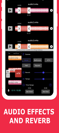 •เพิ่มเสียง ผลกระทบ: เลือกจากความหลากหลายของเอฟเฟกต์เสียงเช่นปกติ, EQ, EQ, Tempo และอื่น ๆ