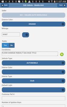 Mobile AAA is the mobile version of Automated Auto Auction. It allows the user to perform lot management functions such as registering cars, creating condition reports, taking pictures, assigning car numbers, and gate check out and check in. This app is to be used only by our auto auction customer's employees. It is not to be used by the general public.