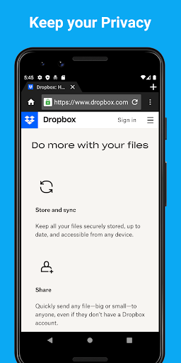 - Private Tabs (Incognito) to help you stay anonymous while browsing.