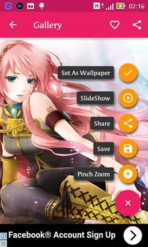 This feature allows you to make anime images as wallpaper on your mobile phone. In the feature are also features Crop, which you can use to crop images to fit the screen of your phone.