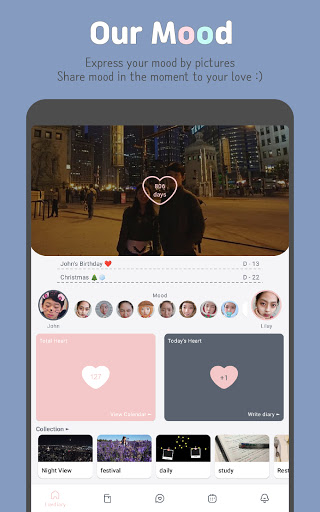 อารมณ์เพิ่มรูปภาพของตัวเองที่แสดงอารมณ์ของคุณดีและแบ่งปันกับคนที่คุณรักโดยเลือก ทุกสองชั่วโมงอารมณ์จะถูกรีเซ็ตเพื่อให้อารมณ์ของคุณทันสมัยอยู่เสมอ ไม่มีการเลือกอารมณ์เครื่องหมายคำถามจะปรากฏขึ้น หากอารมณ์ของคนที่คุณรักเป็นเครื่องหมายคำถามคุณสามารถส่งการแจ้งเตือนได้โดยคลิกที่มัน แบ่งปันอารมณ์ของกันและกันแบบซิงโครนัส
