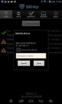 If any new device connects to your Wifi, WifiCop searches it in its database. If unknown, it alarms and you can either identify it or be suspicious that there is an intruder and do further actions.