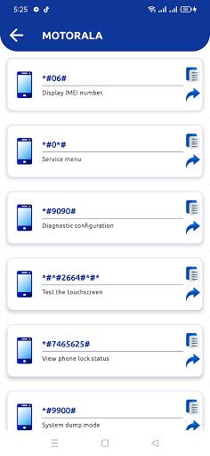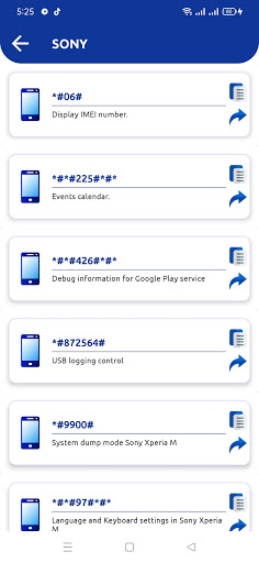 ผ่านรหัสลับเหล่านี้คุณสามารถตรวจสอบเครือข่ายบลูทู ธ GPS , การทดสอบ WLAN, การทดสอบจากโรงงาน, ข้อมูลเฟิร์มแวร์, ค้นหาหมายเลขโทรศัพท์ IMEI ไปที่โหมด Super, รับเมนูบริการปลดล็อกอุปกรณ์ของคุณตรวจสอบการอัปเดตใหม่รีเซ็ตอุปกรณ์ของคุณไปที่โหมดวิศวกรรมรับข้อมูลซอฟต์แวร์กู้คืน รูปแบบถ้าคุณหายไปทดสอบ GPS รับข้อมูลฮาร์ดแวร์ทดสอบรูปถ่าย RGB รับข้อมูลเครื่องและอื่น ๆ อีกมากมาย