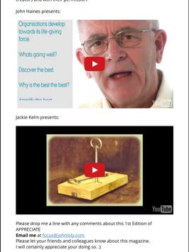 APPRECIATE the digital magazine will present a wide variety of ideas, ways of thinking about, seeing and doing things that have helped people and organisations improve.