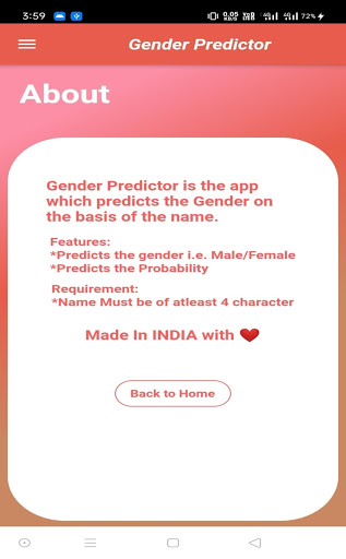 Gender Predictor is the app which predicts the gender on the basis of the name.