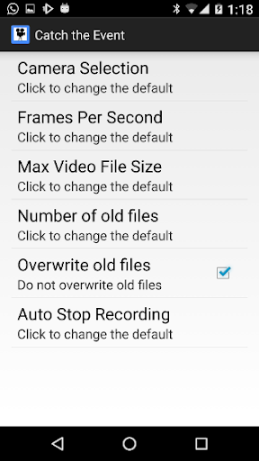 ขึ้นอยู่กับจำนวนหน่วยความจำฟรีอุปกรณ์ Android ของคุณเลือก "จำนวนไฟล์เก่า", "ขนาดไฟล์วิดีโอแม็กซ์" และ "เฟรมต่อวินาที" ในเมนูการตั้งค่า