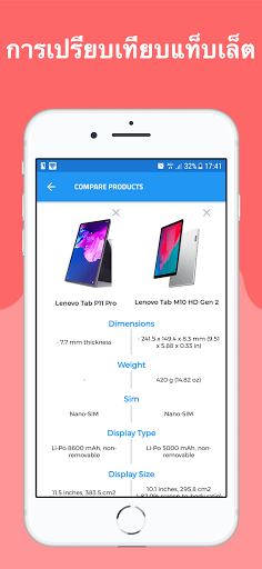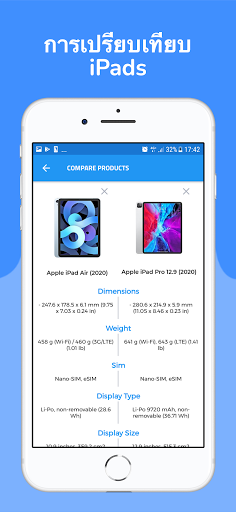 - ดูภาพรวมโดยย่อเกี่ยวกับข้อมูลจำเพาะทั้งหมดของโทรศัพท์เทียบกับโทรศัพท์เครื่องอื่นเพื่อช่วยให้คุณเข้าใจความแตกต่างระหว่างกัน
