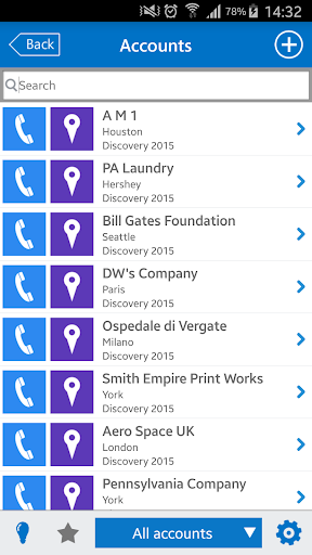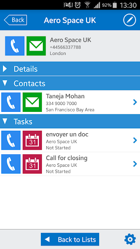 The biggest benefit is the easy cross-list navigation in the system. From a company you can drill down to view the company-related contacts or documents, display contact-related interactions and navigate back and forth. Click to call, click to email or click to localize a company using our shortcut actions.