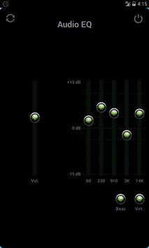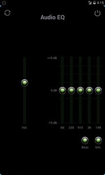Enhance music by yourself on this cool app with regard to audio equalizer. -5 bands equalizer (from low bass-60 Hz to high-14000 Hz with -15 dB to + 15 dB to enhance the quality of your songs) -Bass boost effect Feature: +15 dB -15 dB 60-14K