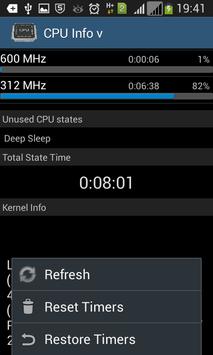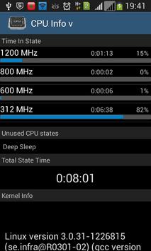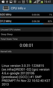 CPU INFO et une application android pour visualiser le temps le CPU passe dans chaque Etat de fréquence, ainsi que les informations de noyau actuelle.