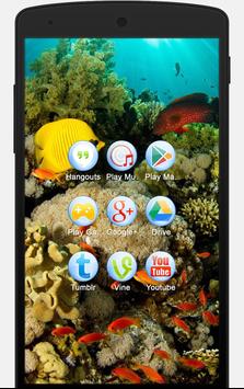 Turn your phone into aquarium with light,blue, round icons and aquatic animals and plants wallpaper.