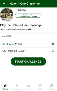 Select Start Challenge and hit your shot (no mulligans). If you hit a Hole in One, just report your shot. We will verify the claim, load footage to our social media channels, share the links with you and send you your money! Make sure to claim your hole in one by midnight on the day the shot was made.