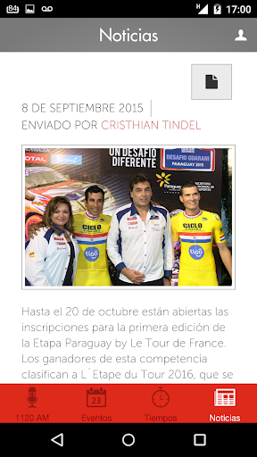 ด้วยแอพ Sports 1120 AM คุณสามารถ: - ฟังการเขียนโปรแกรมออนไลน์ของเรา - เพื่อค้นหาข่าวกีฬาปารากวัยล่าสุด - บินเหตุการณ์กีฬาที่กำลังจะมาถึง - มีชีวิตการแข่งขันของวันที่ของ ชุมนุมในปารากวัย