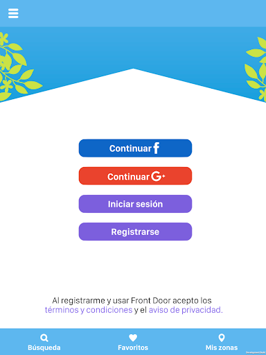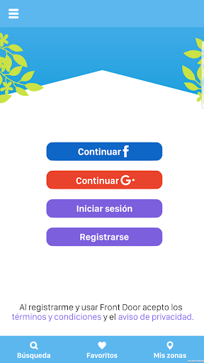 Front Door cuenta con una página web, www.frontdoorcorp.com, donde los usuarios dan de alta sus propiedades y pueden obtener información sobre la plataforma, sin embargo, todo lo referente a la búsqueda de inmuebles se hace por medio del App, la cual, de acuerdo a tus filtros, y tu ubicación podrá darte información en tiempo real sobre los inmuebles cercanos.