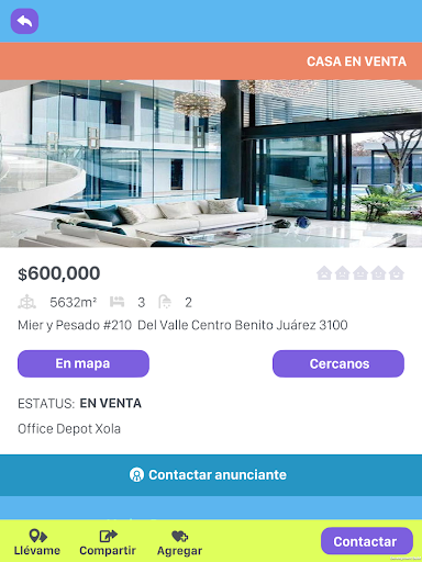 Existe una agenda interna que lleva tus cuentas, una conexión con Waze o Google Maps para llevarte al lugar de tu interés, un registro de todo lo que haz visto, de tus favoritos, así como datos de las personas que mostraron más interés en tu inmueble para poder dar seguimiento efectivo.