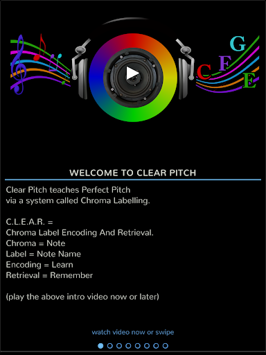 Clear Pitch explains and teaches perfect pitch, also known as absolute pitch. A user can expect to develop absolute pitch using this product, as well as improving other pitch coding abilities such as pitch memory, perfect piano and relative pitch.