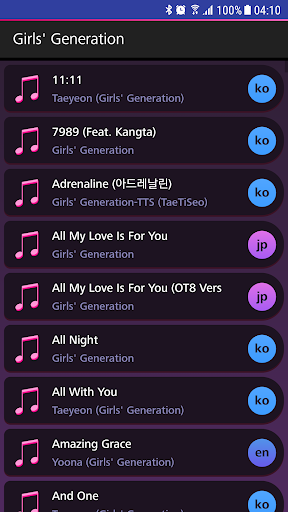 In this application you can find great number of Girls' Generation lyrics. This application does not contain audio or video. It only contains the lyrics, the title and the name of the artist.