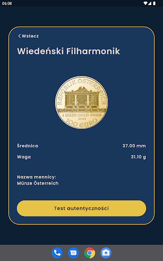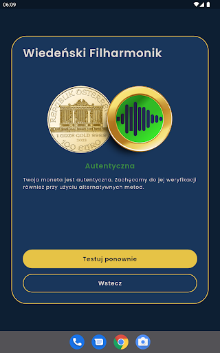 Coin Tester เป็นแอปพลิเคชั่นขั้นสูงที่ช่วยให้ผู้ใช้สามารถตรวจสอบความถูกต้องของเหรียญทองและเงินหนึ่งออนซ์แอปพลิเคชันใช้วิธีการสั่นพ้องแบบอะคูสติก (ดังนั้น -เรียกว่าการทดสอบ ping) และปัญญาประดิษฐ์เพื่อตรวจสอบว่าผู้ใช้จัดการกับเหรียญจริงหรือไม่