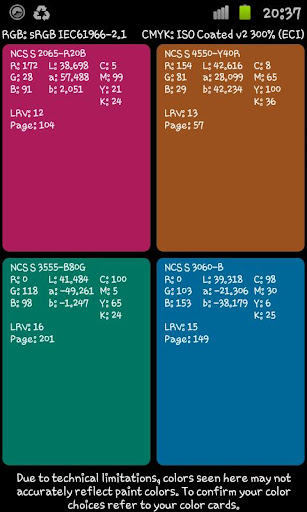 แอป Colorix.com Pro สำหรับ Android มีการอ้างอิงNCS®©และ Ral Classic Color ทั้งหมดเช่น L*A*B*ค่า SRGB, CMYK และ LRV
