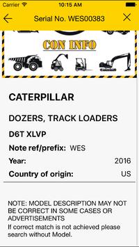The CON INFO* Serial Number Guide App allows you to determine the year model of Construction, Earthmoving, Mining and Logging Machinery and Equipment from over 400 manufacturers by simply entering the make, model and serial number.