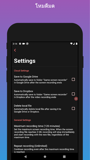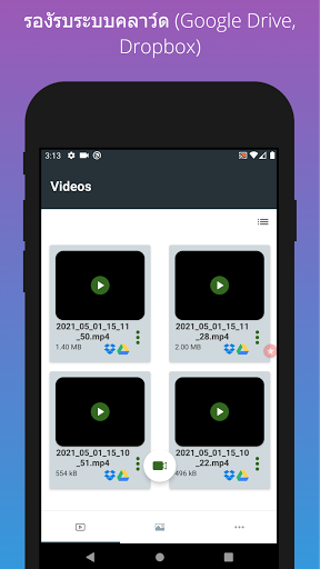 รองรับระบบคลาวด์ (วิดีโอที่บันทึกจะถูกอัปโหลดโดยอัตโนมัติใน Google Drive, Dropbox)
