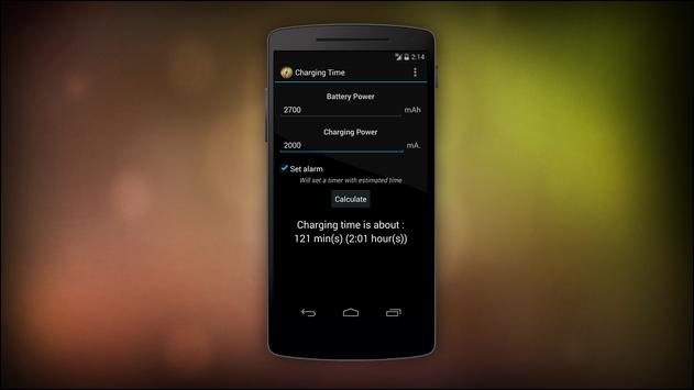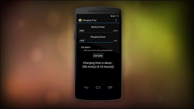 All you have to do is to enter the battery power (in mAh, written on your battery), and the charging power (in mA, written on your charger)