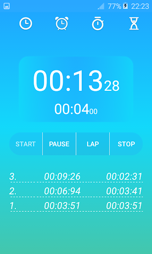Elegant alarm clock app that offers all the necessary clock features including stopwatch that allows you to keep track of your laps, beautifully designed timer with progress bar and multifunctional alarm.