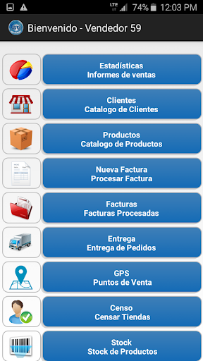 Funcionalidades: - Rastreo de personal. - Ventas. - Impresión de comprobantes. - Entrega de pedidos. - Cobranza. - Stock de productos.