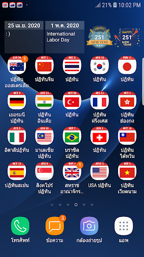 คุณสามารถตั้งค่าปฏิทินประเทศไทยเป็นวิดเจ็ตได้ นอกจากนี้ยังมีวิดเจ็ตสำหรับคริสต์มาสและปีใหม่นับถอยหลัง