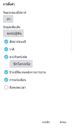 มีตัวเลือกให้ตั้งค่าเริ่มต้นของสัปดาห์เป็นวันจันทร์หรือวันอาทิตย์