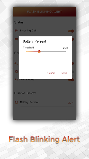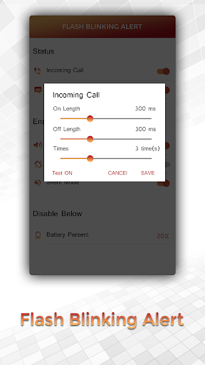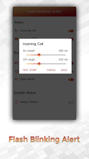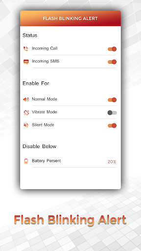 is simple Android application which will use your camera flash to make flash alerts while device is ringing or new SMS or MMS message is received. Fully customization flashlight! Set custom amount of flashes and speed for all incoming calls.