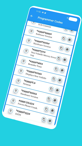 ยังสามารถเปิดเผยข้อมูลที่เป็นประโยชน์มากมายเกี่ยวกับโทรศัพท์ Android ของคุณ เครื่องหมายการค้าสำหรับรหัสลับทั้งหมดมีอยู่ในแอป Android Secret Tricks ฟรีที่มีรหัส Android Secret คุณสามารถตรวจสอบเครือข่ายการทดสอบ WLAN ข้อมูลรุ่นเฟิร์มแวร์การทดสอบโรงงาน, PDA, หมายเลข IMEI, Super Mode, การกู้คืนอุปกรณ์, ข้อมูลโทรศัพท์ ประวัติแบตเตอรี่, สถิติการใช้งาน, ข้อมูล Wi-Fi, การตรวจจับ IMEI, ปิดสมาร์ทโฟนปิด, ดูข้อมูลอุปกรณ์, ดูข้อมูลเฟิร์มแวร์, ดูที่อยู่ Wi-Fi MAC, ลงชื่อเข้าใช้ผู้ให้บริการและลงชื่อเข้าใช้ด้วยอีเมล, ปุ่ม Bluetooth, ปลดล็อคอุปกรณ์ กู้คืนสำเนาที่ถูกลืม, โหมดวิศวกรรม, โหมดทดสอบ GPS, ข้อมูลรถยนต์, ทดสอบภาพถ่าย RGB, การตั้งค่าจากโรงงานอื่น ๆ อีกมากมาย, ล็อคซิม, ปลดล็อคซิมการ์ด, อีกมากมายผ่านทางโทรศัพท์