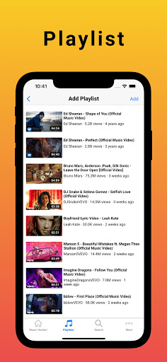 หลอดซึ่งอยู่ตลอดเวลาอัปเดตจะทำให้คุณมีคอลเลกชันเพลงขนาดใหญ่ที่มีคุณภาพสูงและเต็มไปด้วยแนวเพลงคุณสามารถเข้าหาเพลย์ลิสต์ที่มีอำนาจเหนือแผนภูมิในหลายประเทศเช่น GB, JP, KR, US, VN ...