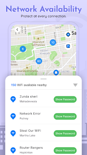แอพนี้มีฟังก์ชั่นที่เกี่ยวข้องกับ VPN ในเวอร์ชันเก่าซึ่งให้ผู้ใช้ใช้ VPN ไม่ จำกัด เพื่อเรียกดูอินเทอร์เน็ตอย่างปลอดภัยและอยู่ออนไลน์ด้วยแอพแผนที่ WiFi เดียวนอกจากนี้คุณสามารถหาข้อ จำกัด ในภูมิภาคและตัวอย่างเช่นเข้าถึงบริการท้องถิ่นของคุณ