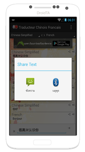 Vous pouvez également partager la traduction de message, sociale et discuter messager pour faciliter