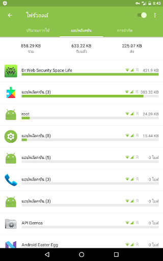 • ตรวจสอบปริมาณการใช้งานของปริมาณที่ถ่ายโอนก่อนหน้านี้และปัจจุบัน, ให้ข้อมูลเกี่ยวกับ แอดเดรส/พอร์ต แก่คุณว่า แอปพลิเคชันใดที่กำลังเชื่อมต่อและจำนวนของปริมาณการใช้งานทั้งภายนอกและภายในแก่คุณ