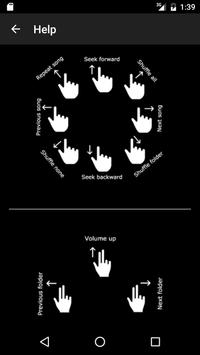 Control the music without looking at the screen. Swipe anywhere on the screen with the direction mentioned in the help to control the music. It automatically loads all the music in your device. It recognizes the folder structure of your music like old style music player instead of depending on the media information in the mp3 to categorize the songs.