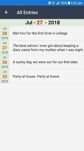 อินเตอร์เฟสที่สะอาดทำให้การเพิ่มรายการเป็นเรื่องง่ายการป้องกันรหัสผ่านช่วยให้คุณประสบความสำเร็จอย่างสมบูรณ์และทำให้มั่นใจได้ว่าไม่มีใครนอกจากคุณสามารถเข้าถึงไดอารี่ส่วนตัวของคุณมีสองธีมในไดอารี่ที่มีพิกเซลการออกแบบที่สมบูรณ์แบบซึ่งทำให้มั่นใจได้ว่าการเขียนไดอารี่เป็นประสบการณ์ที่สนุกสนานด้วยไดอารี่ดิจิตอลอยู่เสมอในโทรศัพท์ของคุณเขียนไดอารี่ของคุณทุกวันกลายเป็นงานง่ายมาก