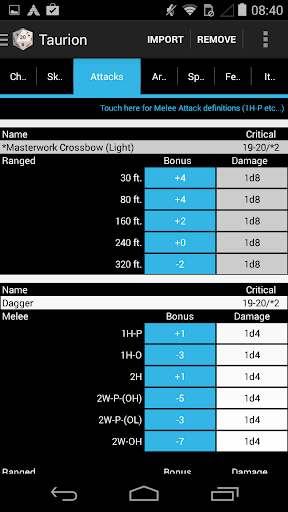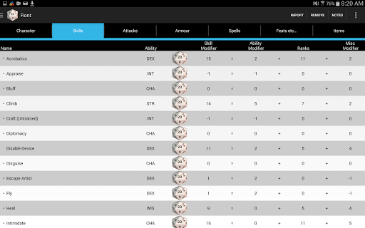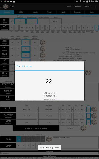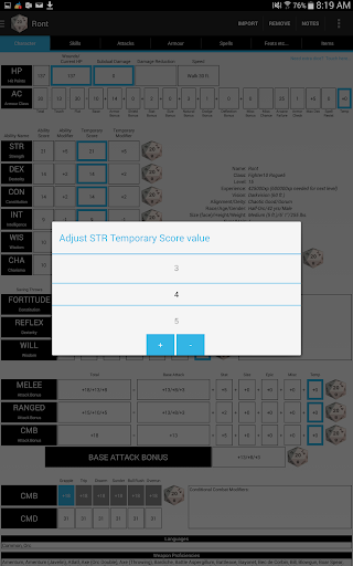 *CMB - the app detects whether your imported CMB Stat value is the same as your STR or DEX modifier, to determine which stat should affect it through Stat Linking (due to certain feats, whether you character size is Tiny etc...)